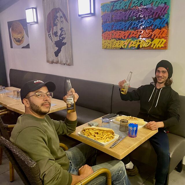 ☪️ Nos produits 100% halal sont stipulés sur la carte par le mot HALAL en rouge en bas à droite des photos.Les viandes halal sont l'entrecôte de bœuf,le filet de poulet,les kebabs au gigot d'agneau,les merguez,les tenders de filet de poulet croustillant,en burgers ou en tenders seuls,les petits burgers au bœuf,et les nuggets de filet de poulet.Attention le bacon,le chorizo et le jambon blanc ne sont pas halal,c'est du porc.
